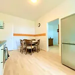 Rummen på lägenheten Betongold Lägenhet har utsikt över staden. Gäster kan använda separat toalett, badkar och dusch.